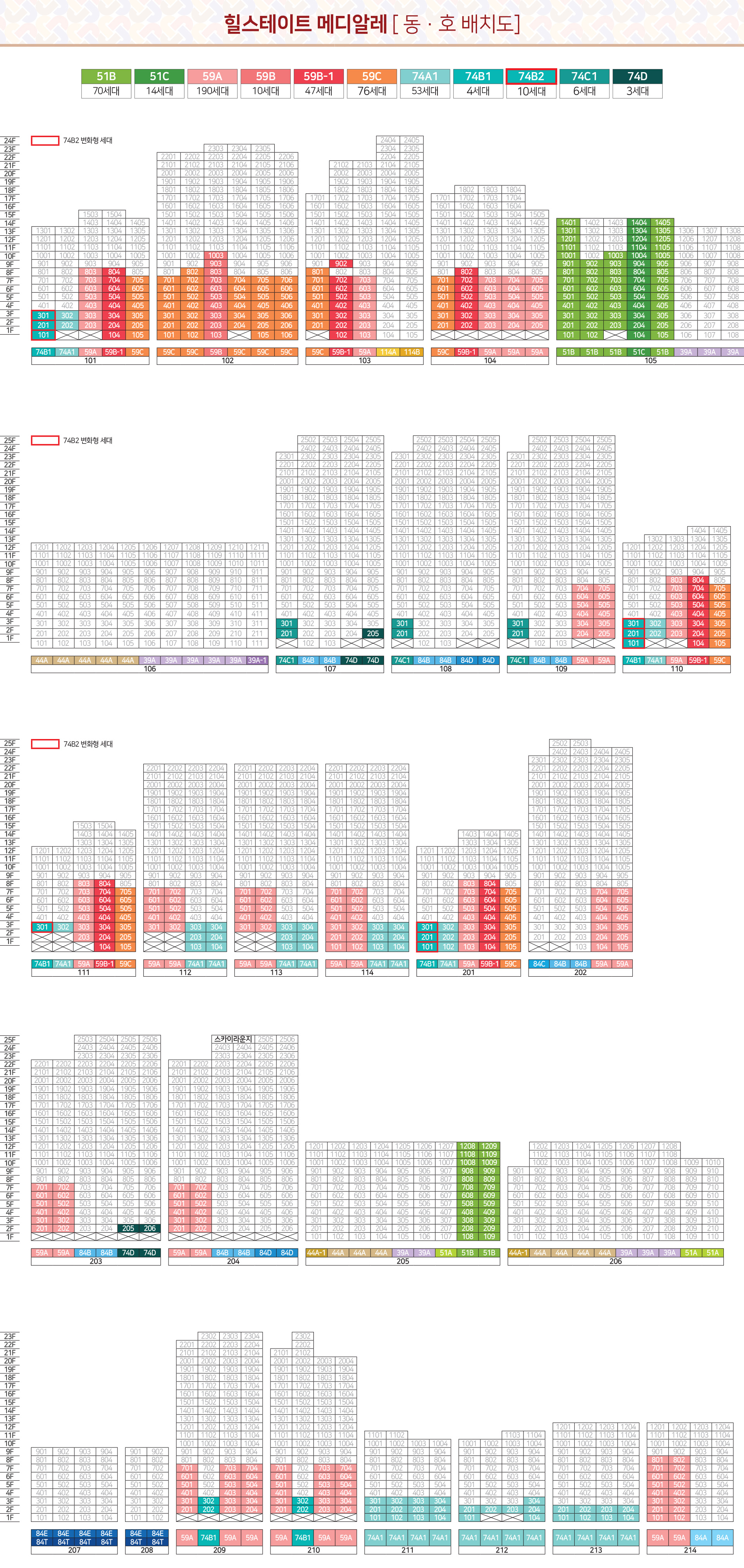 일부 평형은 주차 및 커뮤니티 거리 확인이 필요합니다.